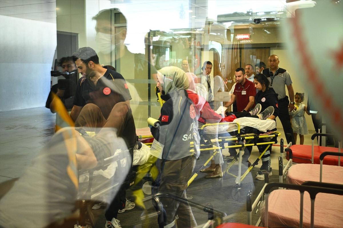 Gazzeliler, Esenboğa Havalimanı'nda hazır bekletilen ambulanslarla Etlik Şehir Hastanesi'ne sevk edildi.