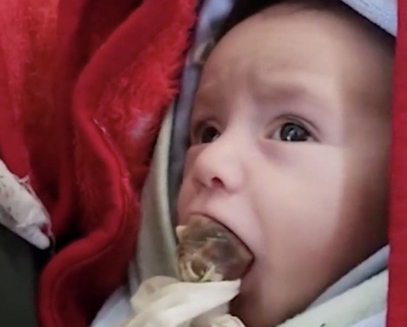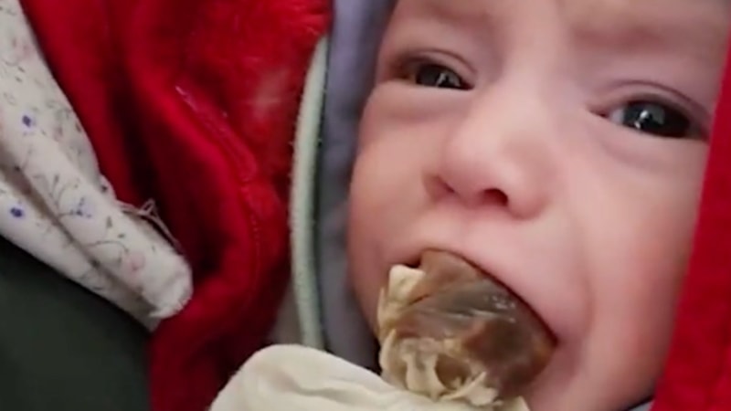Ağlayan bebeğini hurma ezmesi ile besledi