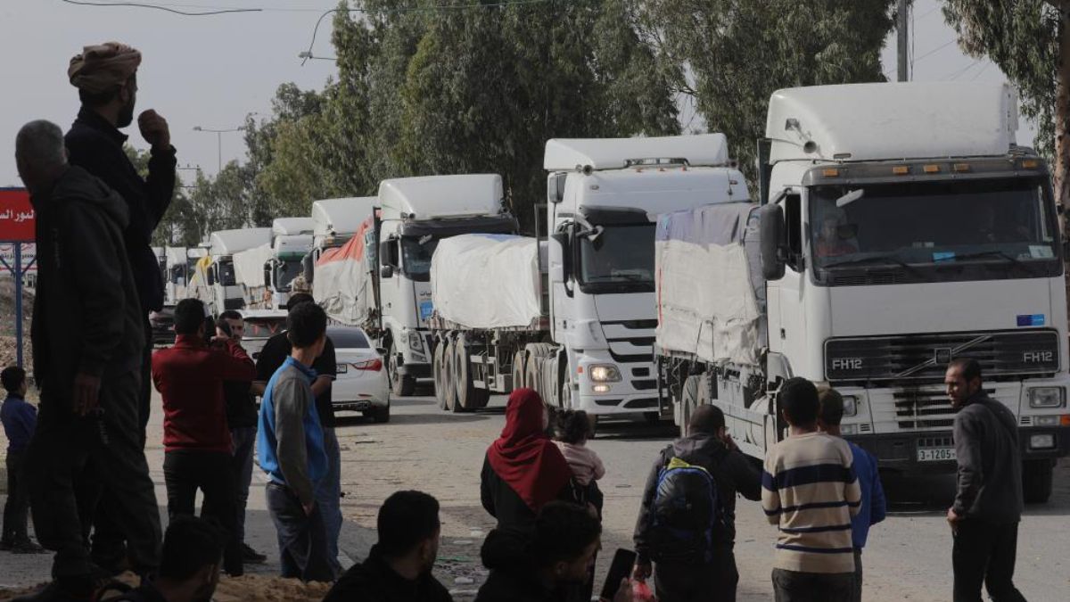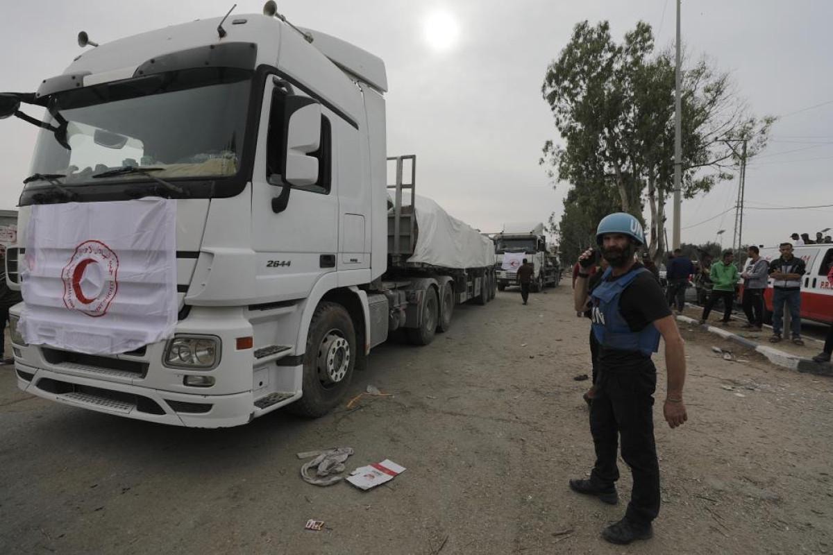 Mısır sınırındaki Refah Sınır Kapısı’ndan geçen tırlar Gazze Şeridi’ne gıda malzemeleri gibi temel ihtiyaç malzemelerini taşıyor. İnsani aranın başlamasından bu yana Gazze Şeridi’ne 200 tır geçti.