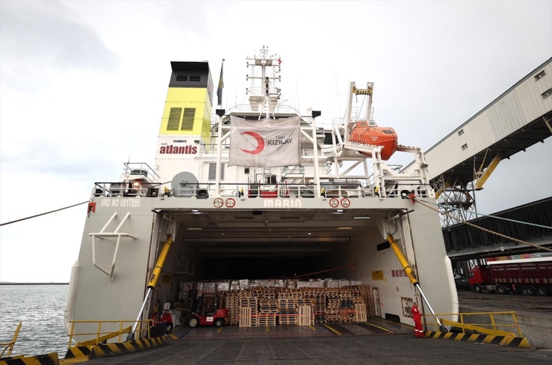 Limana yanaşacak gemiden indirilecek insani yardım malzemeleri, tırlarla Refah Sınır Kapısı'na taşınacak.