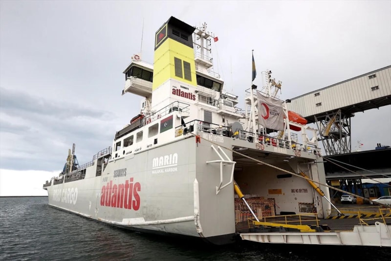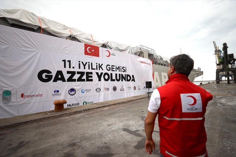 Gazze'ye ulaştırılması için Türk Kızılay öncülüğünde hazırlanan 5 bin 66 ton insani yardım malzemesini taşıyan gemi, Mersin Uluslararası Limanı'ndan uğurlandı.