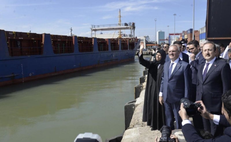 İnsani yardım malzemelerini taşıyan gemi, konuşmaların ardından, dua okunması ile uğurlandı.