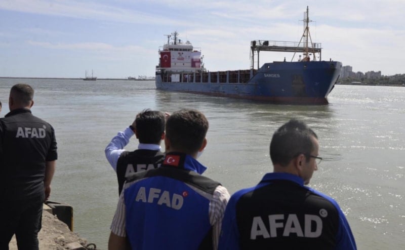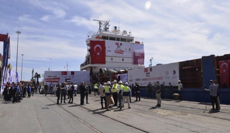 Gazze Şeridi'ndeki Filistin halkıyla dayanışma amacıyla AFAD koordinasyonunda Sağlık Bakanlığı, Katar Kalkınma Fonu ve sivil toplum kuruluşlarınca temin edilen gıda, sağlık, hijyen ve barınma malzemelerinden oluşan 1900 tonluk insani yardım malzemesi bulunan ‘Türkiye-Katar Gazze İyilik Gemisi', Mersin’den dualarla yola çıktı.