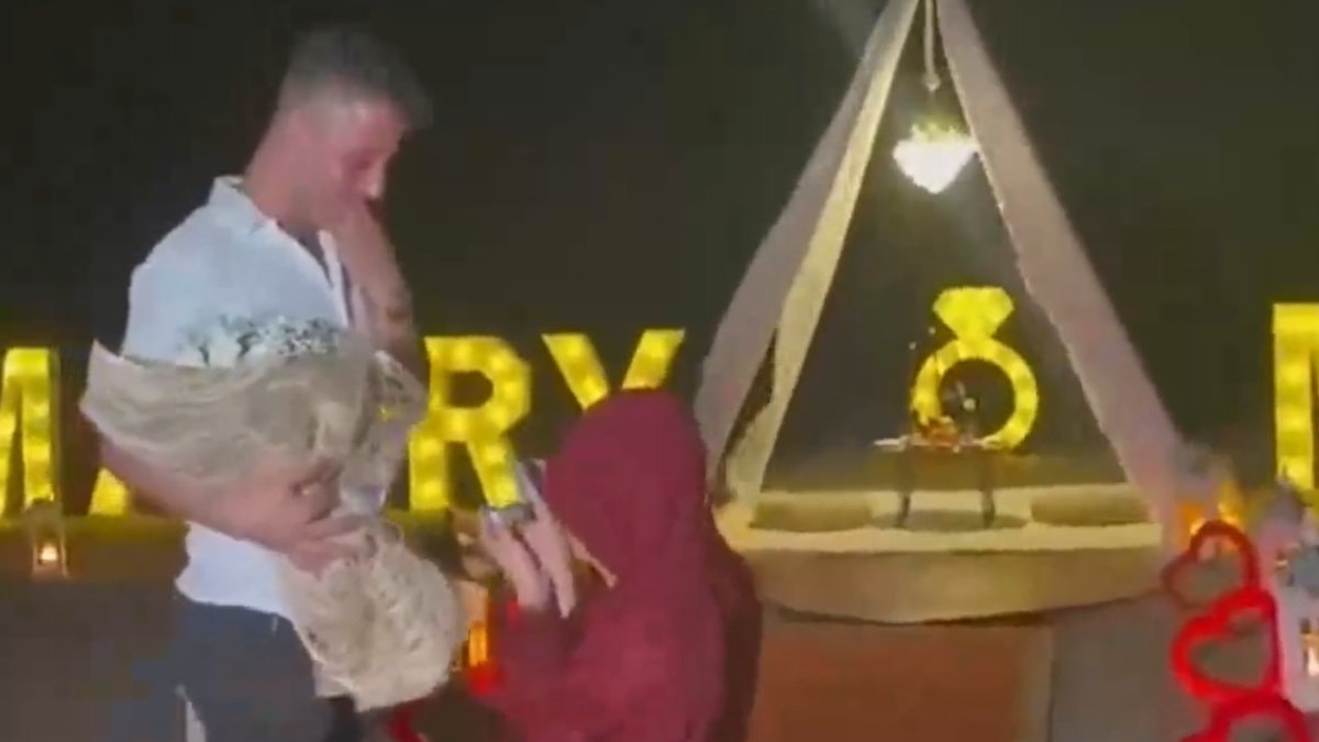 Bu kez görüntüler bir evlilik teklifi organizasyonuna ait.