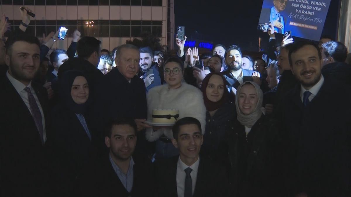 Ellerinde pasta ve çiçekle bekleyen gençler, Cumhurbaşkanı Erdoğan'ın doğum gününü tebrik etti.