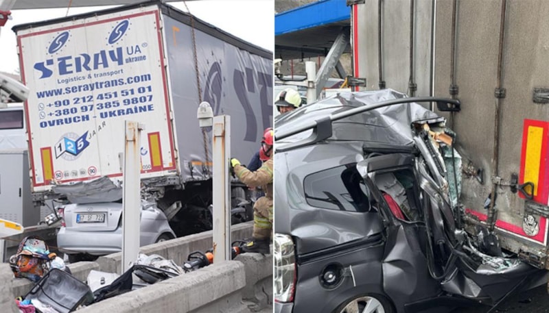 Kuzey Marmara Otoyolu'ndan Ankara istikametine ilerleyen otomobil, gişelerde ödeme yapan tıra arkadan çarptı. Kazada 3'ü kadın, 4 kişi hayatını kaybetti.