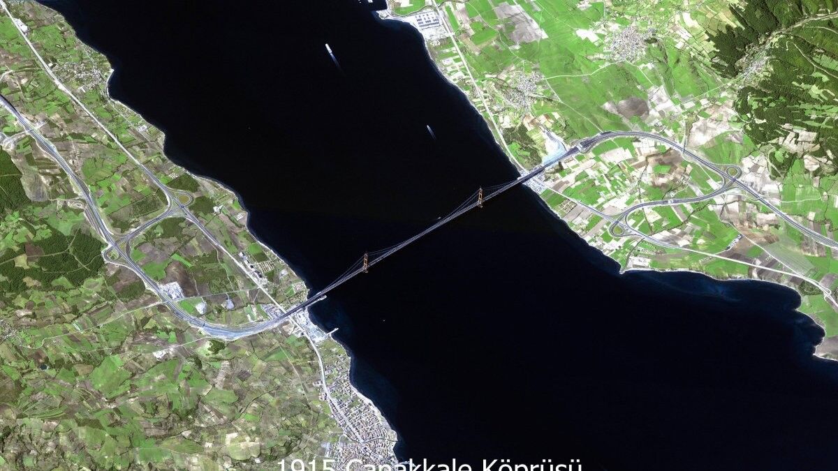 Açılışı 18 Mart'ta, Cumhurbaşkanı Recep Tayyip Erdoğan tarafından yapılan 1915 Çanakkale Köprüsü, 'Göktürk-1' uydusundan görüntülendi.