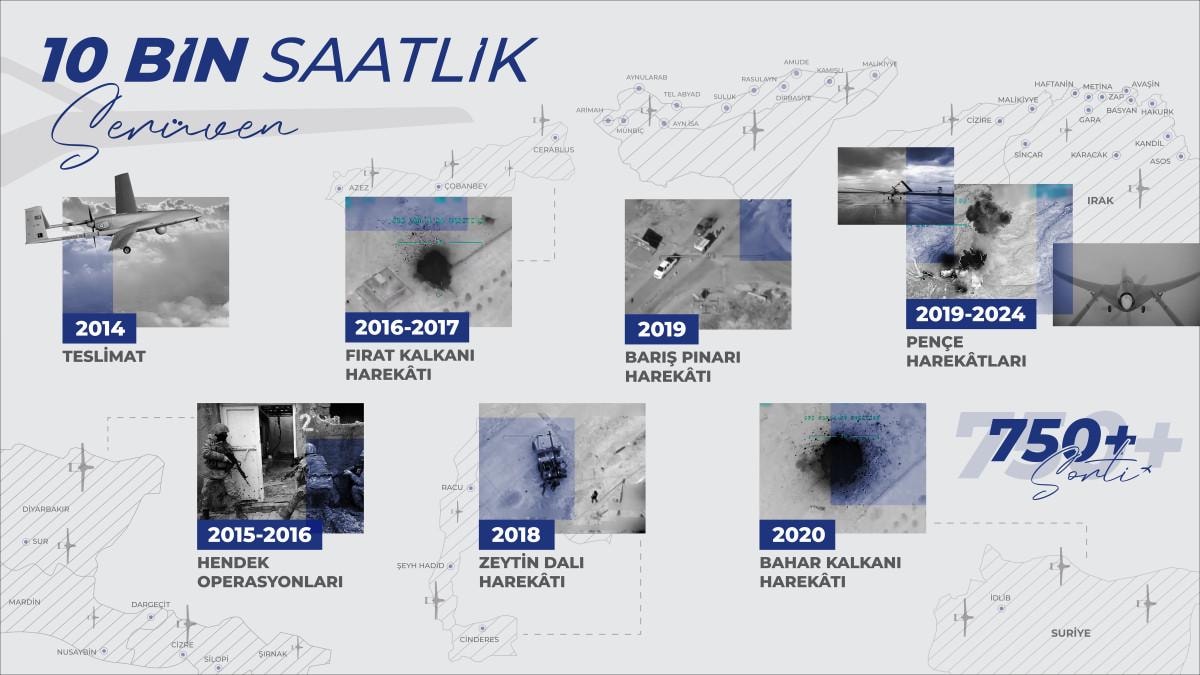 10 bin saattir başarıyla semalarımızda görev yapan Bayraktar TB2 S5 İHA, 2014 yılında kabul testlerini başarıyla geçerek envantere girdi. Daha sonra sırasıyla Hendek Operasyonları, Fırat Kalkanı, Zeytin Dalı, Barış Pınarı, Bahar Kalkanı ve halen devam etmekte olan Pençe harekâtlarında önemli görevlere imza attı. Görevi süresince 750’den fazla sorti gerçekleştirdi.