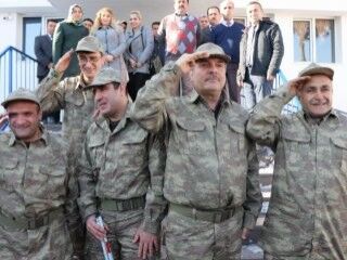 Askerlik Şubesi Başkan Vekili Astsubay Kıdemli Başçavuş Serkan Yalçın tarafından karşılanan görme engelli vatandaşlar, "Bizler askere gitmek istiyoruz." dediler.