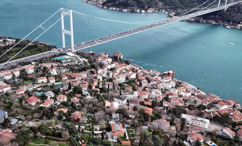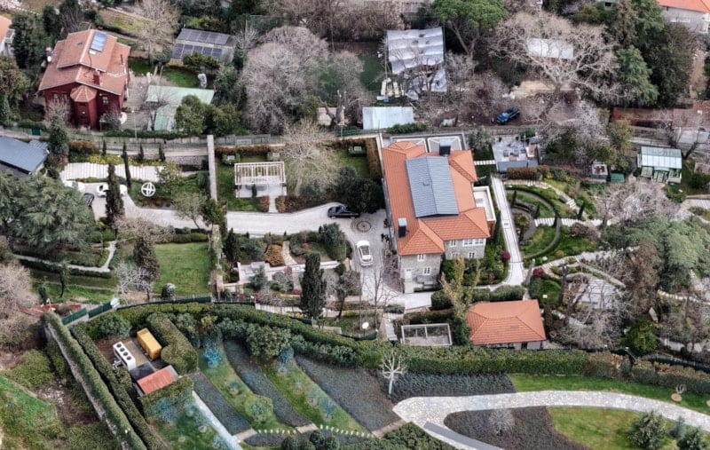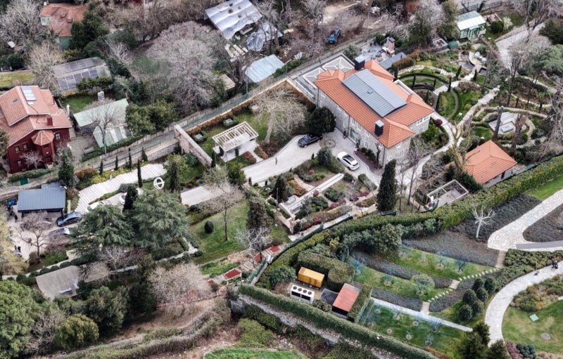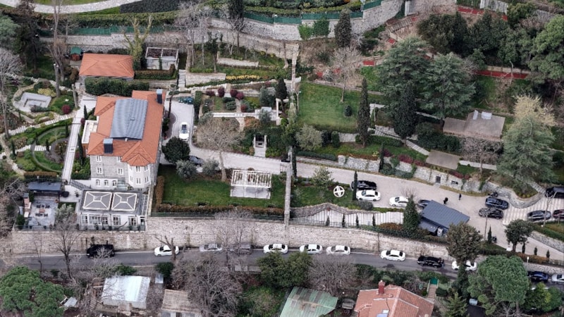 İstanbul Cumhuriyet Başsavcılığı tarafından başlatılan kent uzlaşısı ve yolsuzluk soruşturması kapsamında gözaltına alınan Ekrem İmamoğlu'nun Sarıyer'de bulunan evindeki hareketlilik havadan görüntülendi.