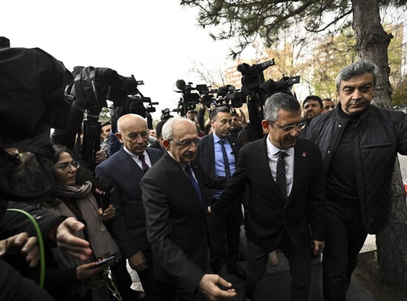 Kemal Kılıçdaroğlu Özel'i kapıda karşıladı, ikili ofise birlikte giriş yaptı.