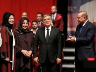 Cumhurbaşkanı Erdoğan'dan müsade isteyen 11. Cumhurbaşkanı Abdullah Gül gelininin diplomasını bizzat verdi. Hayrunnisa Gül de Ayşe Zehra Karadere'ye sarılıp tebrik etti.