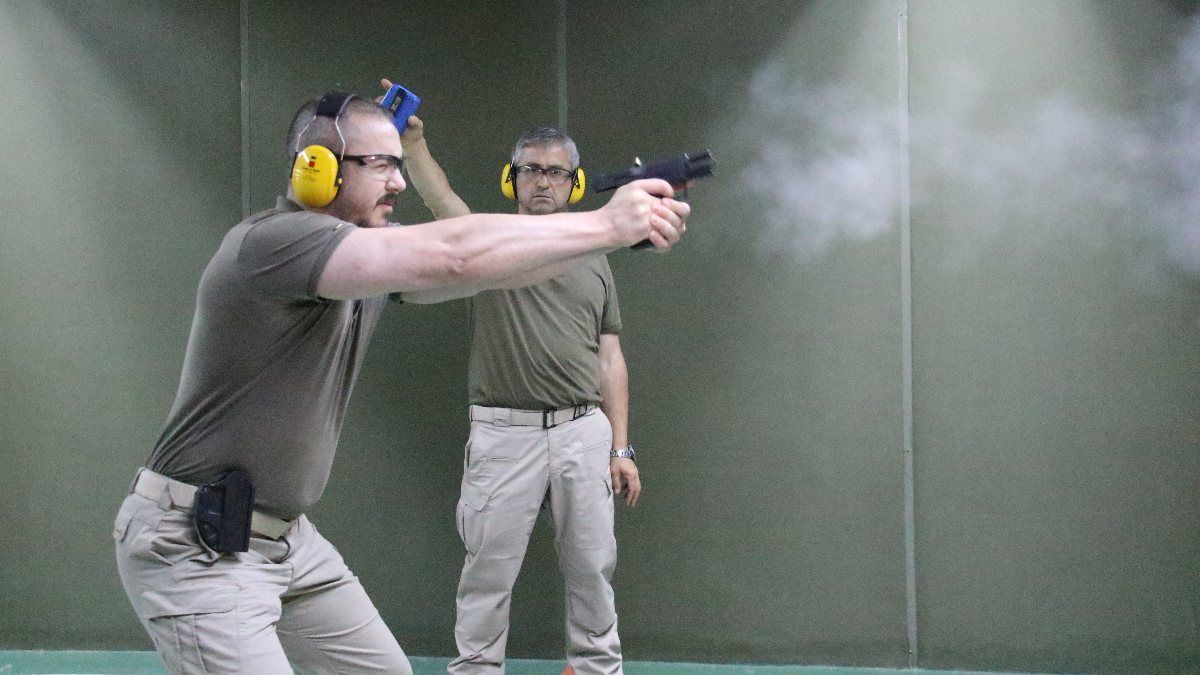 Eğitim Merkezi’nde adeta bir kamp sürecine giren gümrük muhafızlarına verilen silah kullanım eğitimlerinde önce gerçek silahla aynı ağırlığa ve balistiğe sahip lazer silahlarla, ardından gerçekleri ile ateşli silahlara hakim olma öğretiliyor.