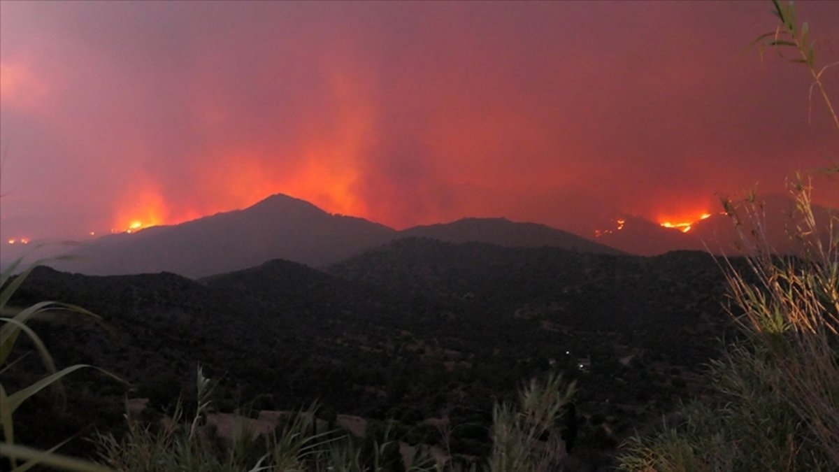 Rüzgarın etkisiyle yayılan ve bazı yerleşim yerlerini tehdit eden yangını söndürme çalışmaları havadan ve karadan devam etti.