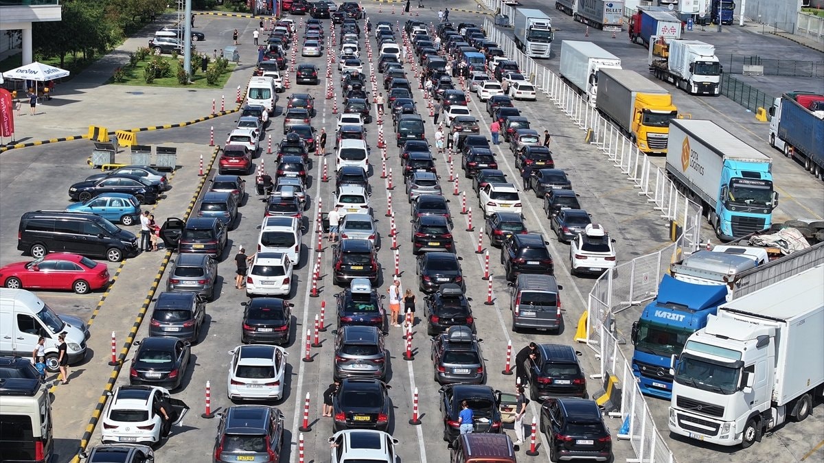 Çıkış için sınır kapısında sıraya giren gurbetçiler, pasaport işlemlerinin ardından yaşadıkları ülkelerin yolunu tutuyor.