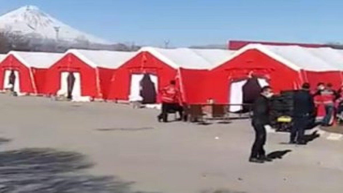 Ağrı'nın Doğubayazıt ilçesindeki Gürbulak Sınır Kapısı'nda, koronovirüse karşı alınan önlemler kapsamında sahra hastanesi kurulmaya başlandı.