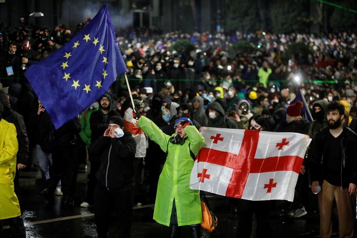 Gürcistan'da Başbakan İrakli Kobakhidze hükümetinin Avrupa Birliği'ne (AB) katılım müzakerelerini 2028 yılına kadar askıya alma kararına karşı düzenlenen protestolar, ikinci günde devam etti.