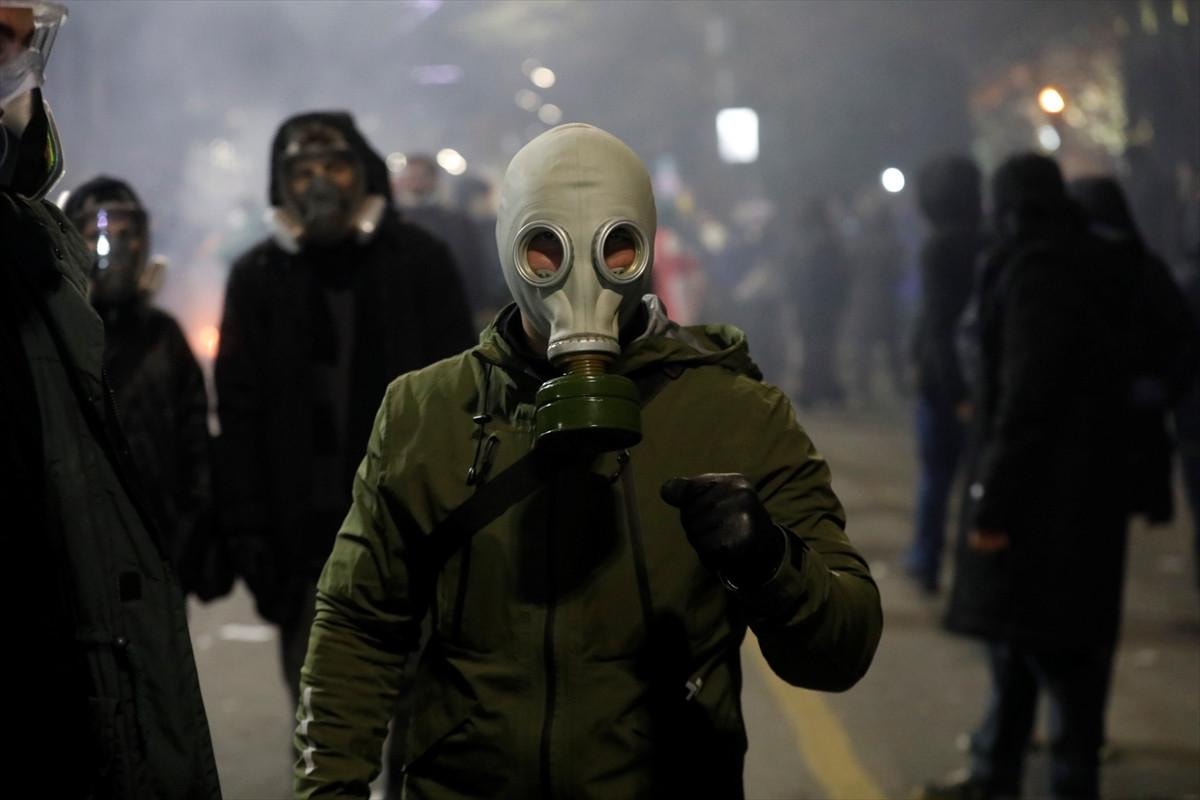 Parlamento binası önünden 200 metre geri çekilen protestocular, çevredeki sandalye ve çöp konteynerlerle barikatlar oluşturarak sabah saatlerine kadar polisle çatıştı.