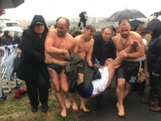 HAÇI ÇIKARMAK İÇİN BUZ GİBİ DENİZE ATLADILAR