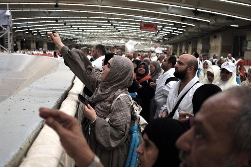 Hac ibadeti için kutsal topraklarda bulunan hacı adayları, Kurban Bayramı'nın ilk gününde Mina'da şeytan taşlama ibadetini yerine getirdi.
