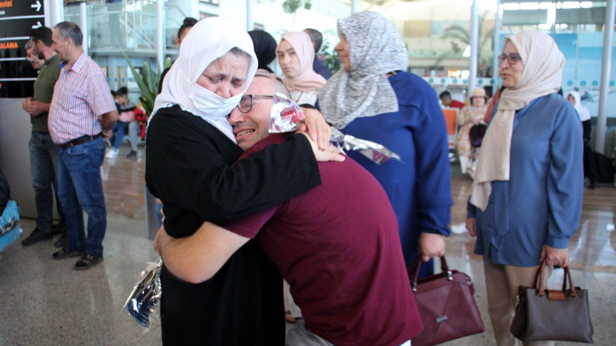 İHA'nın aktarımına göre, yakınları yaklaşık 1 aydır ayrı kaldıklarını hacılara sarılarak hasret giderdi.