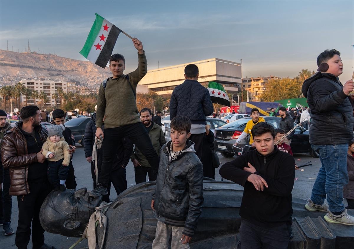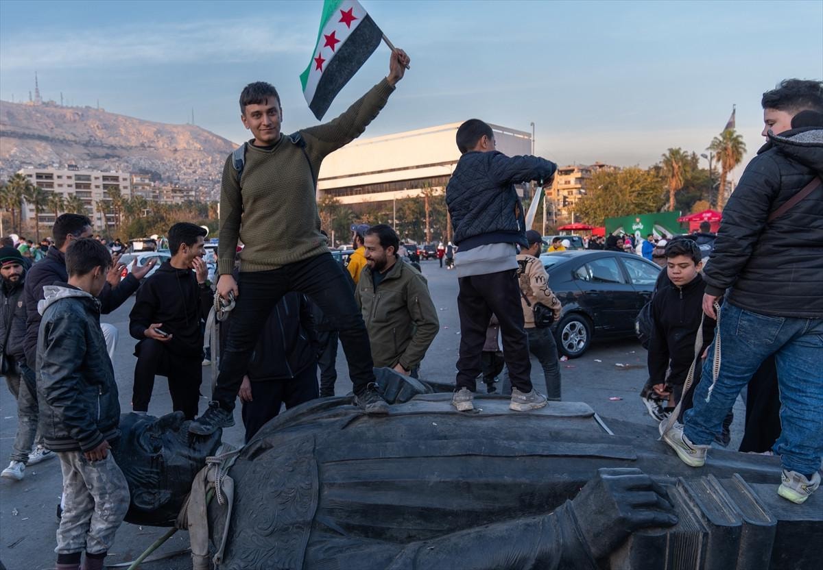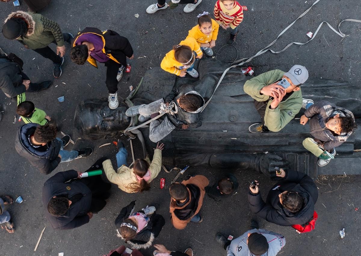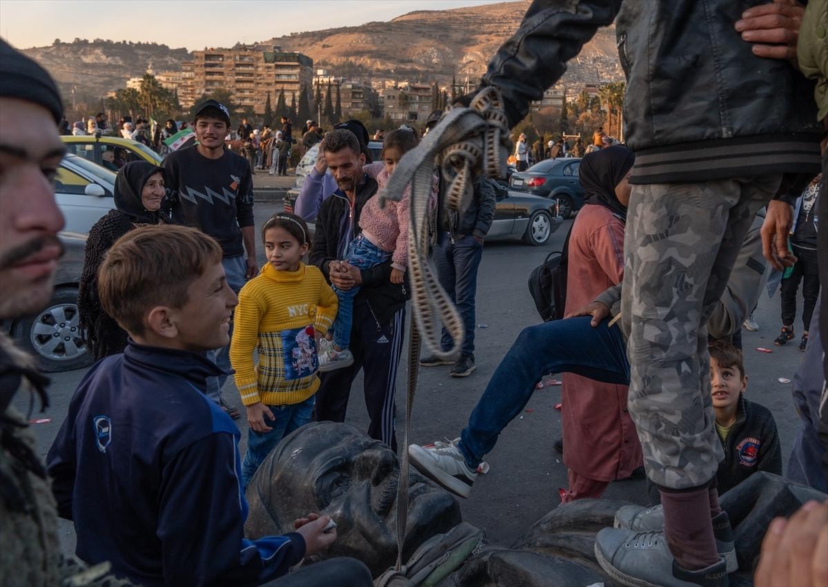 Yıkılan heykeli araçlarının arkasına bağlayan Suriyeliler, "Yaşasın özgür Suriye", "Esad rejimine son" ve "Halkın zaferi" sloganları eşliğinde Şam sokaklarında tur atarak coşkulu bir protesto gerçekleştirdi.