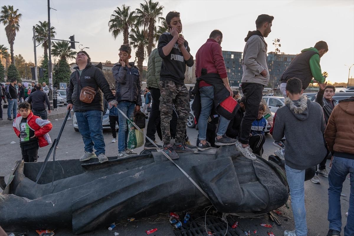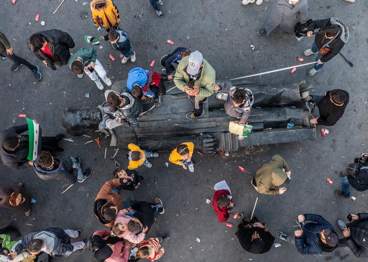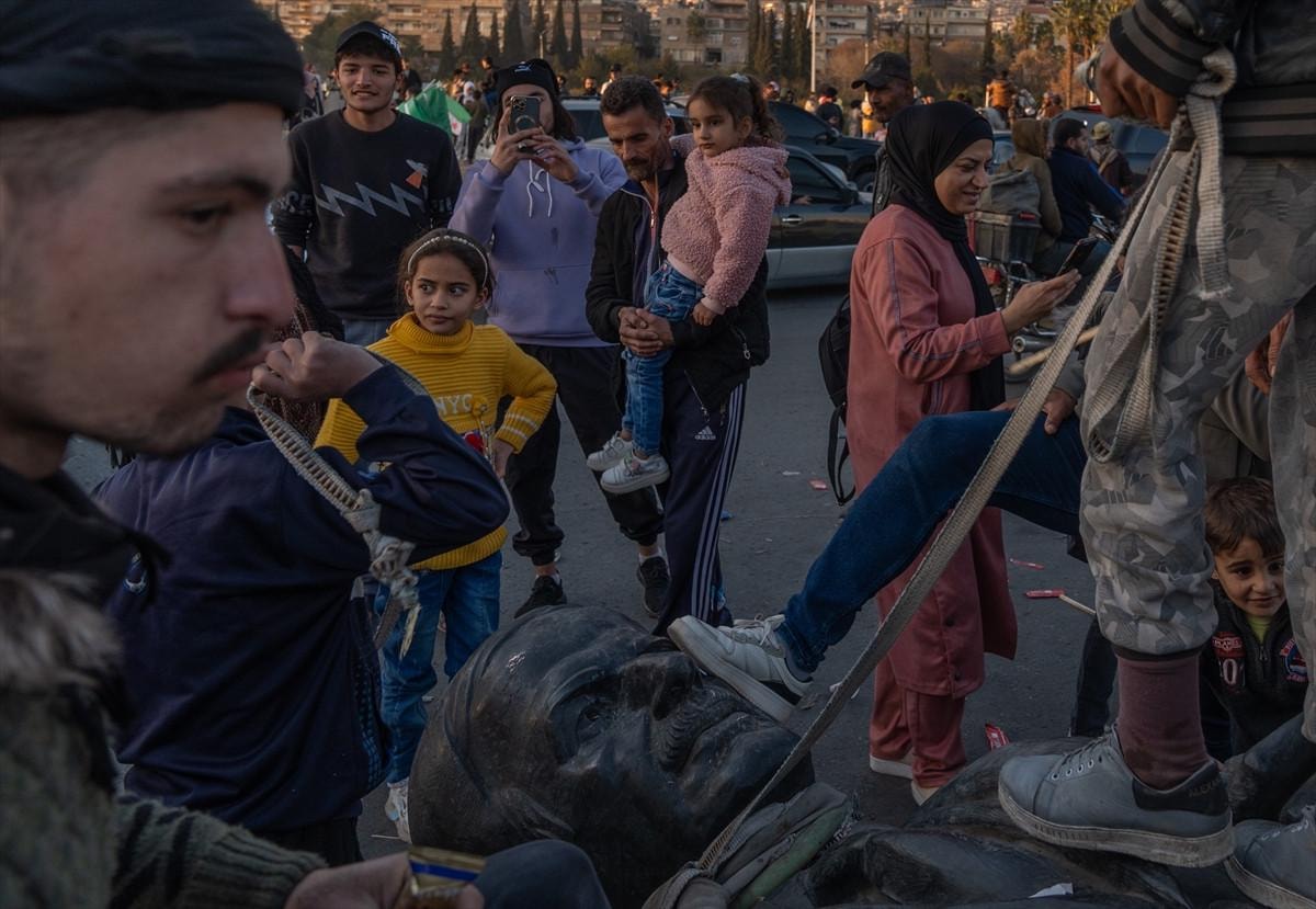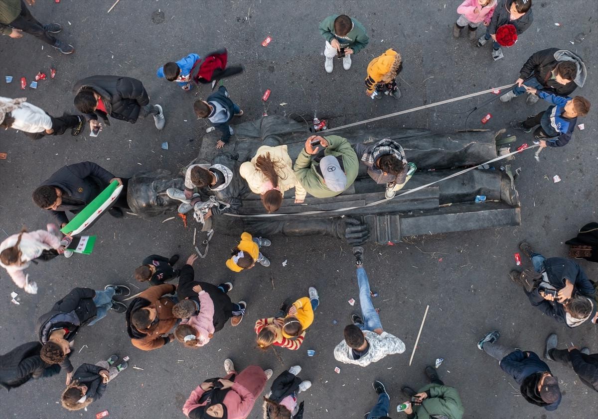 Başta Şam olmak üzere birçok kentte Beşar Esad ve babası Hafız Esad'a ait heykeller, posterler ve fotoğraflar, Suriyeliler tarafından yerle bir ediliyor. Bugün başkent Şam'da yaşanan bir olayda, Hafız Esad'ın bir heykeli yıkılarak Emevi Meydanı'nda sürüklendi. Heykelin üzerine çıkan halk, zafer işaretleri yaparken, sloganlarla rejime olan tepkilerini dile getirdi.
