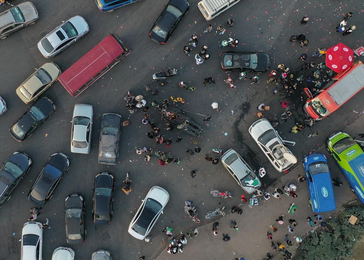 BABA ESAD'IN HEYKELİ, EMEVİ MEYDANI'NDA SÜRÜKLENDİ