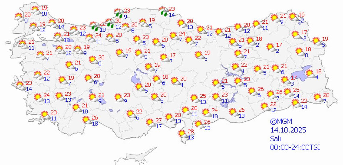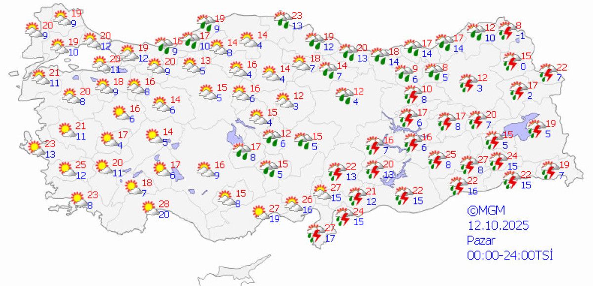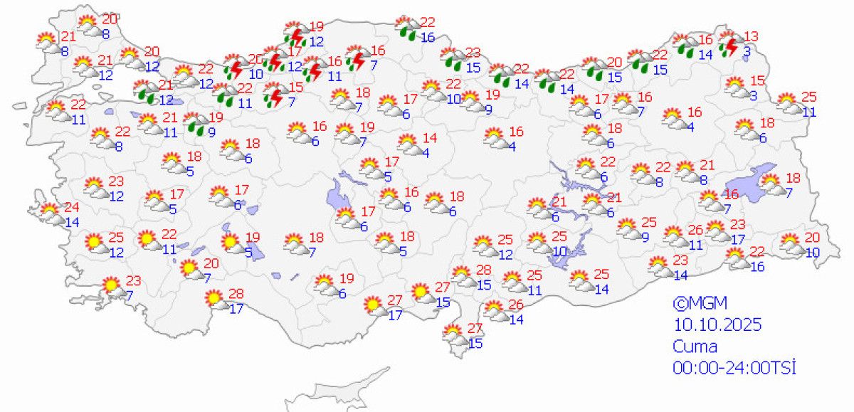 - Meteoroloji Genel Müdürlüğü, hafta sonu sıcaklıkların mevsim normallerinin altında olacağını ve genel olarak yağışlı bir hava beklendiğini açıkladı.