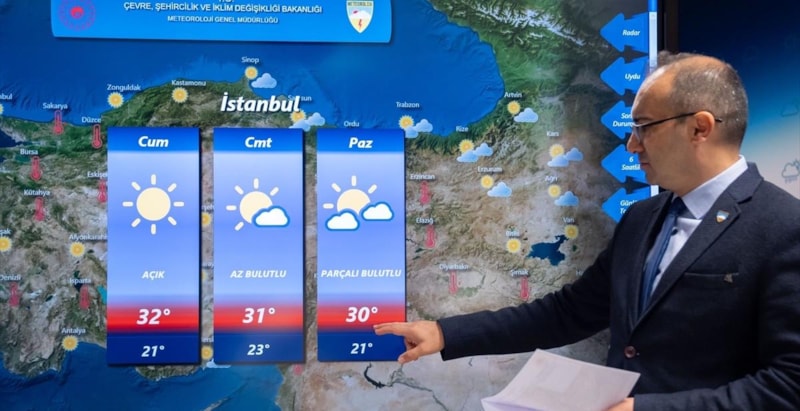 Çelik, sıcaklıkların İstanbul'da 30 ila 32, Ankara'da 33 ila 34 ve İzmir'de 34 ila 37 derecelerde seyredeceğini belirtti.