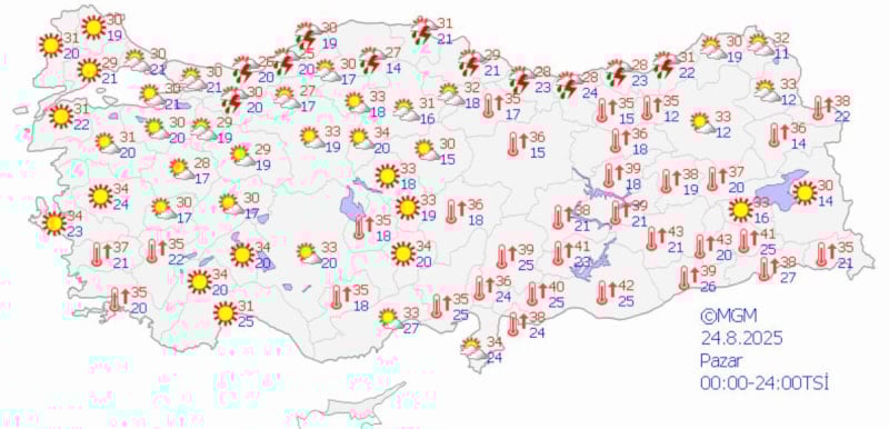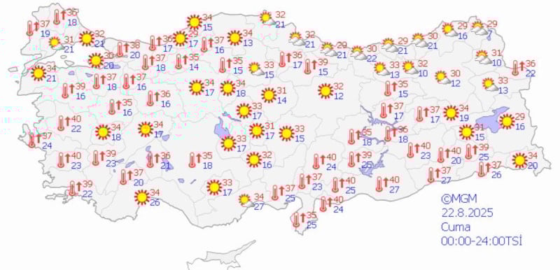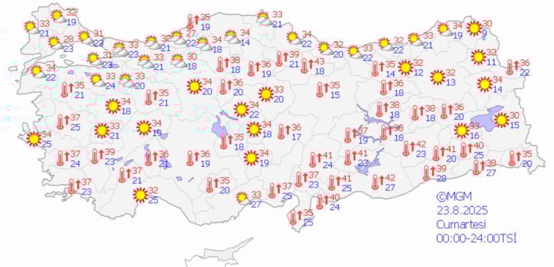 Türkiye genelinde sıcaklıklar hafta sonu da mevsim normallerinin üzerinde olacak. Sıcaklıklar İstanbul'da 30 ila 32, Ankara'da 33 ila 34 ve İzmir'de 34 ila 37 derecelerde seyredecek.