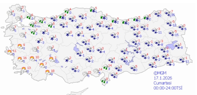 Öte yandan İstanbul Büyükşehir Belediyesi (İBB) Afet Koordinasyon Merkezi (AKOM) ise kentte 18-19 Ocak tarihlerinde karla karışık yağmur beklendiğini bildirdi.