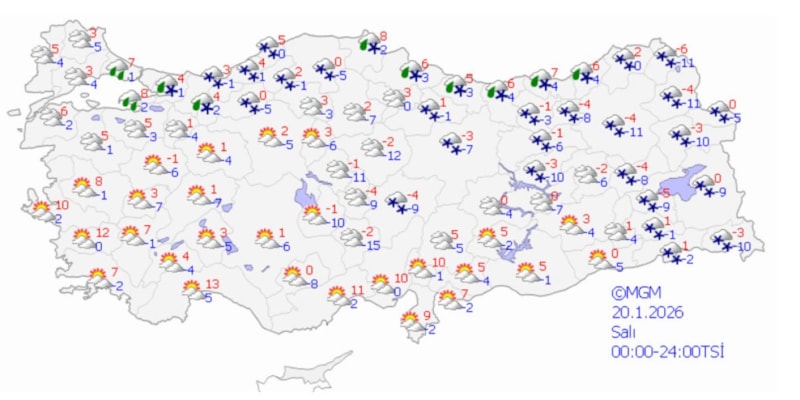 Raporda, en düşük sıcaklığın 3, en yüksek sıcaklığın ise 8 derece olması beklenen 20 Ocak Salı günü ise kentte havanın parçalı ve az bulutlu geçeceğinin tahmin edildiği belirtildi.