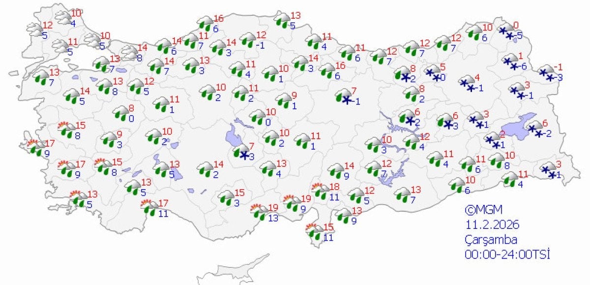 - İstanbul, Ankara ve İzmir'de yağışlı hava hakim olacak, Bursa, Yalova, Sakarya, Kocaeli, Bolu ve Düzce'de kuvvetli yağış bekleniyor.