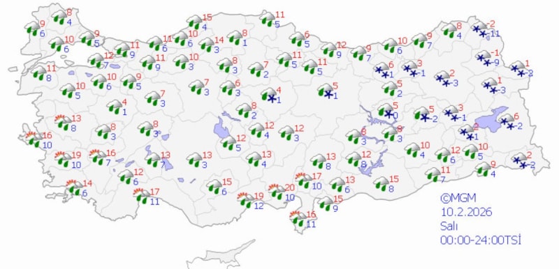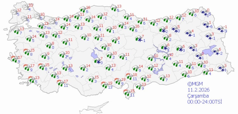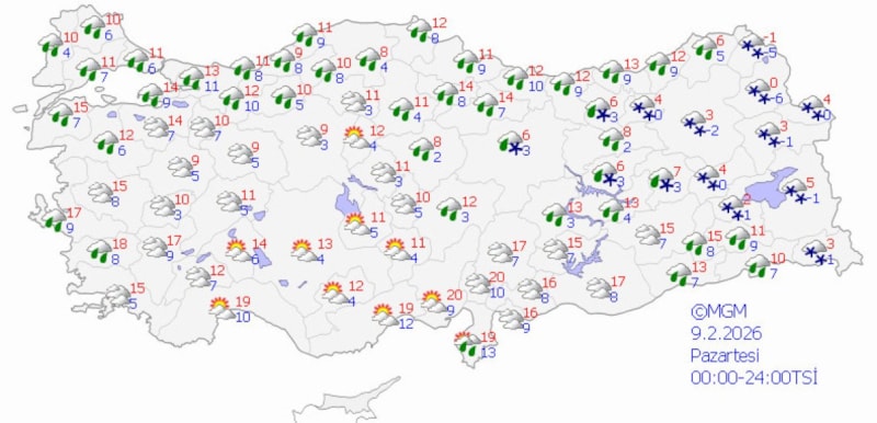 Hafta sonu Türkiye'nin batısı yağmurlu, doğusu kar yağışlı geçecek.