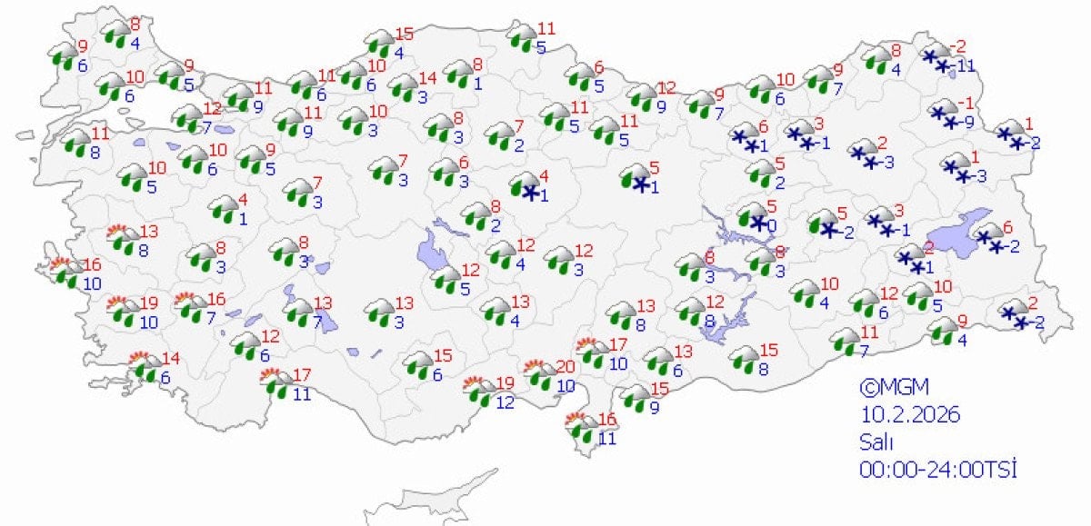 - Hafta sonu Türkiye'nin batısında yağmur, doğusunda ise kar yağışı etkili olacak.
