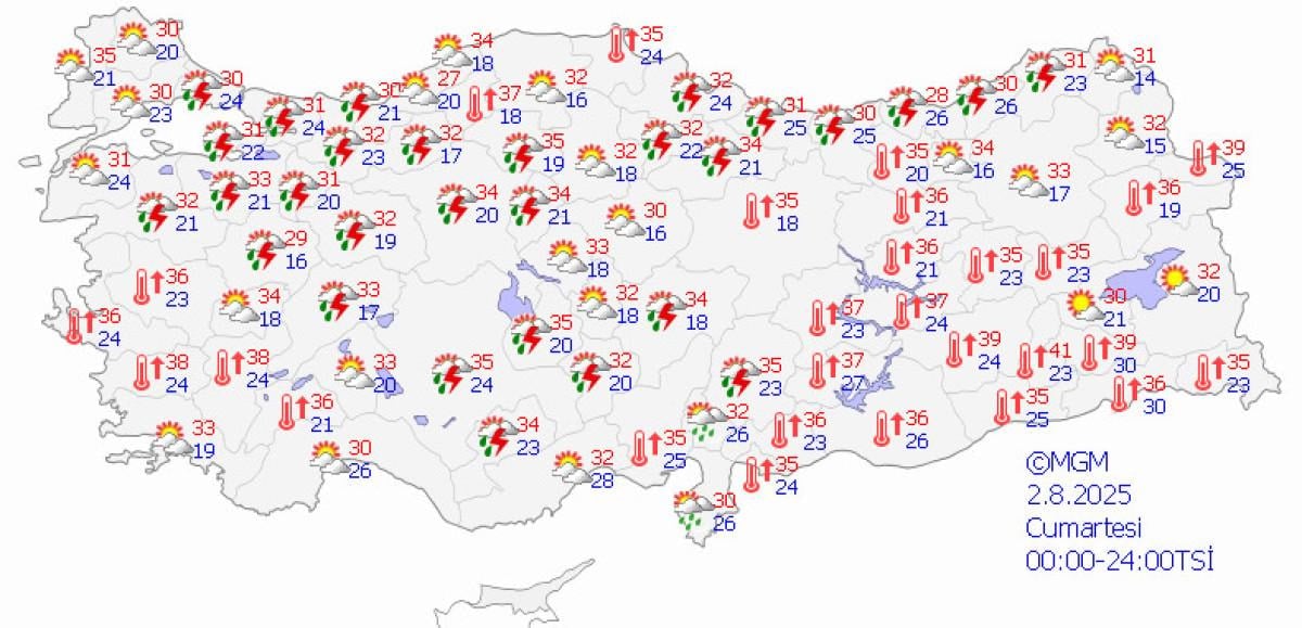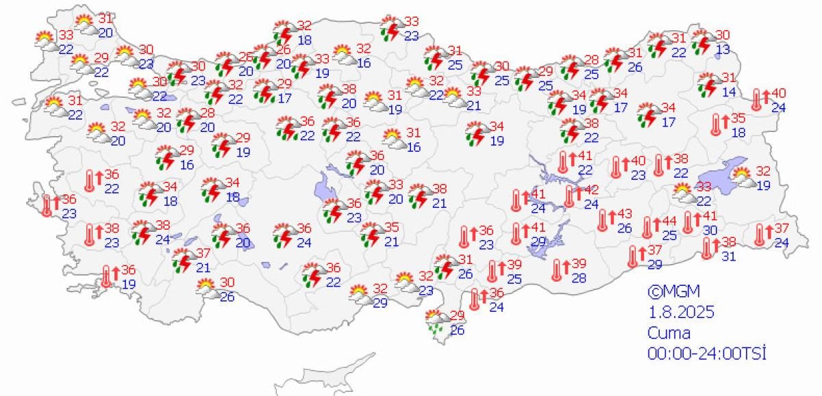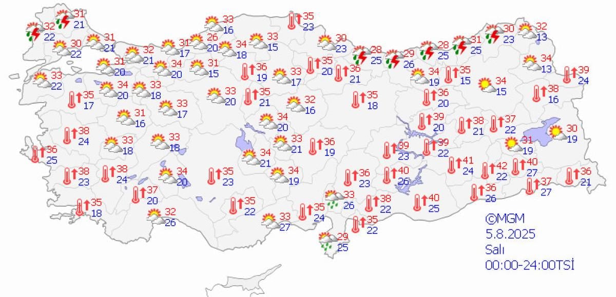 Çelik, İzmir'de ise yağış beklenmediğini, en yüksek sıcaklığın 34 ila 36 derece bandında seyredeceğini kaydetti.