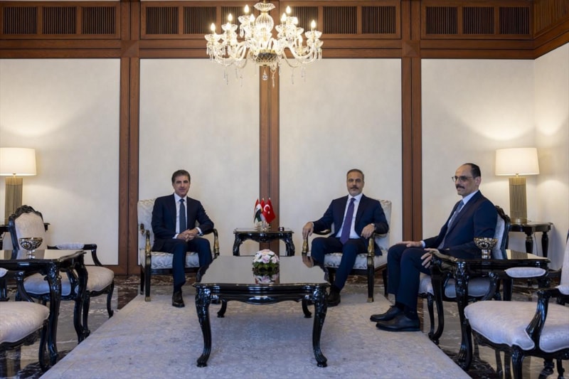 Dışişleri Bakanı Hakan Fidan, Irak Kürt Bölgesel Yönetimi Başkanı Neçirvan Barzani ve Milli İstihbarat Teşkilatı Başkanı İbrahim Kalın, Ankara'da bir görüşme gerçekleştirdi.