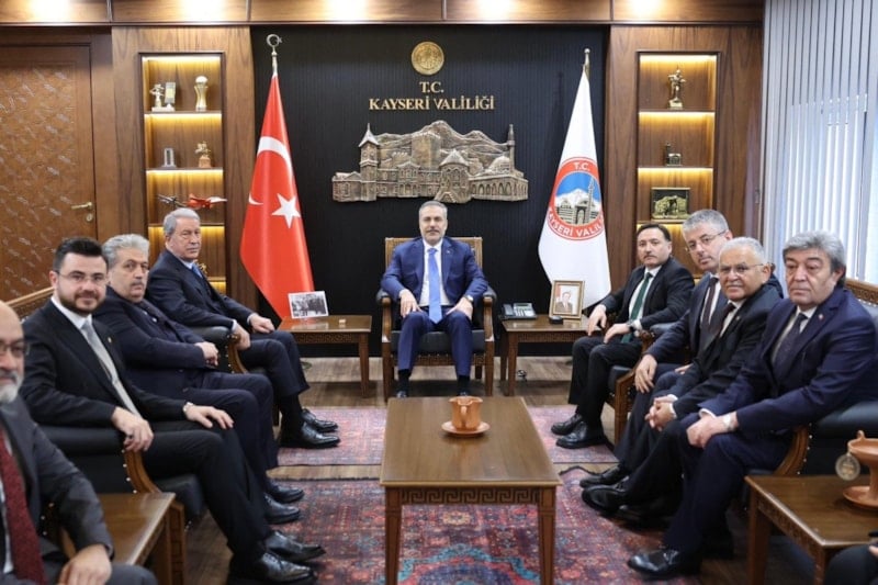 Dışişleri Bakanı Hakan Fidan, önemli temaslarda bulunmak üzere Kayseri'ye geldi. Fidan, Kayseri Valiliği'nin şeref defterini imzalayarak Vali Çiçek ile görüştü.
