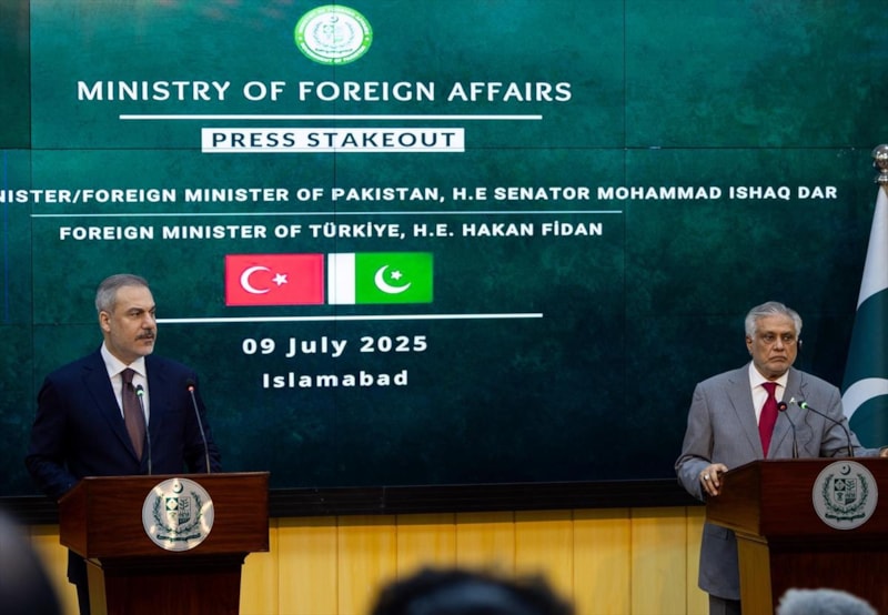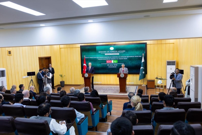 Bakan Fidan, burada Pakistan Başbakan Yardımcısı ve Dışişleri Bakanı Muhammed İshak Dar ile ortak basın toplantısı düzenledi.