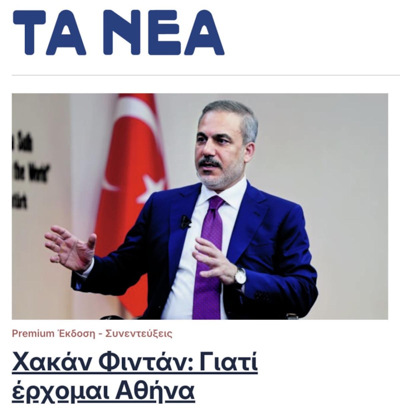 Fidan, Atina'ya 8 Kasım'da yapacağı resmi ziyaret ve Yunan mevkidaşı Yorgos Yerapetritis ile yapacağı görüşme öncesinde, Yunanistan'da yayımlanan Ta Nea gazetesinin sorularını yanıtladı.