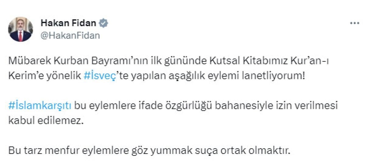 "İsveç’te yapılan aşağılık eylemi lanetliyorum"