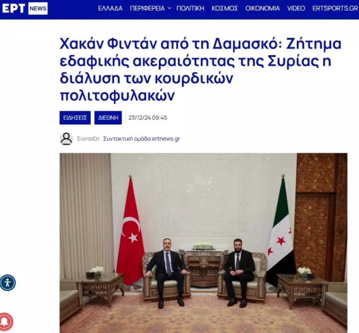 Yunanistan devlet televizyonu ERT, Dışişleri Bakanı Fidan'ın terörle mücadelede kararlılık vurgusuna değindi.