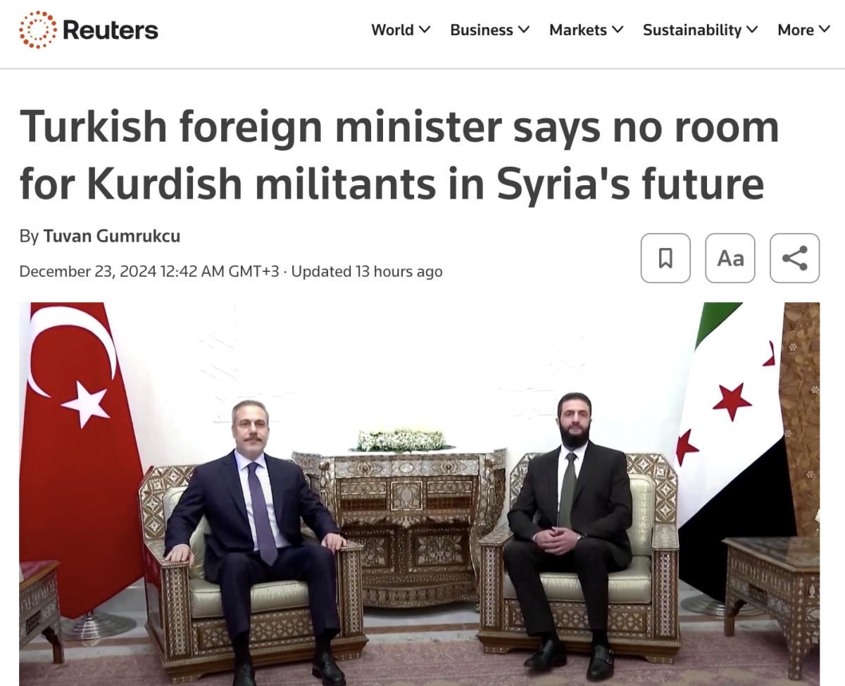 Türkiye'nin Suriye'deki teröristlerle uzun süredir mücadelede olduğunu belirten Reuters, Fidan'ın YPG'nin dağıtılması yönündeki çağrısını öne çıkardı.