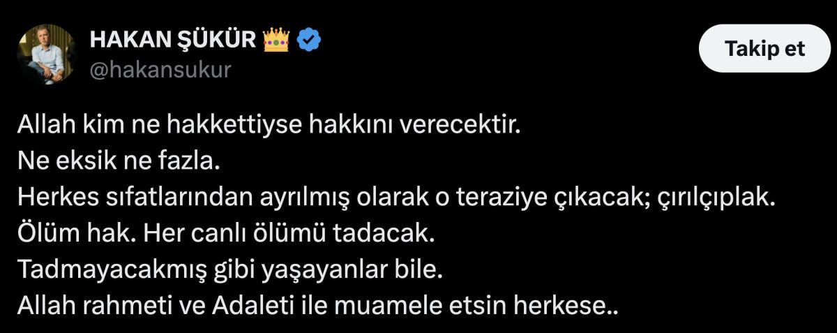 Şükür, paylaşımında şu ifadeleri kullandı:
