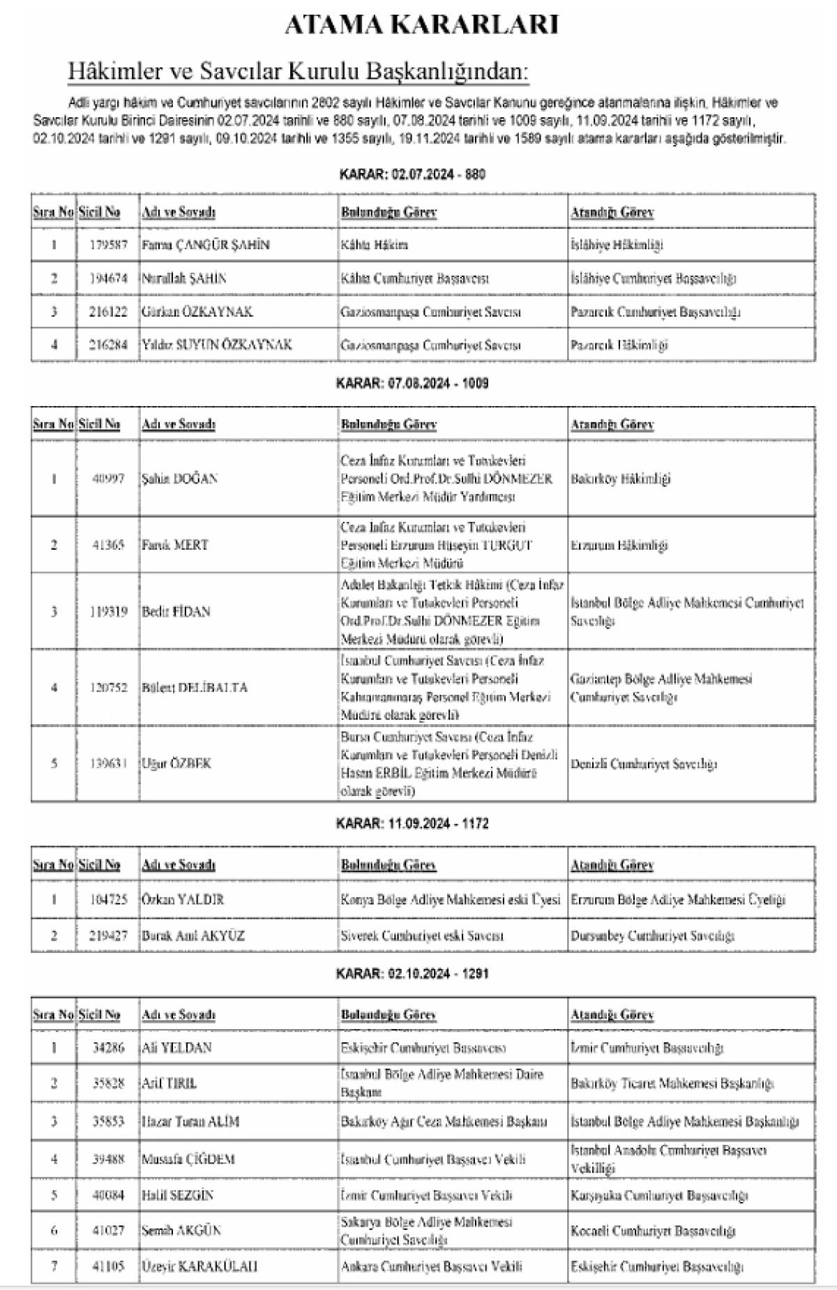 Karar ile birlikte hakim, savcı, başsavcı, başsavcı vekili, mahkeme üyesi ve başkanı atamaları gerçekleştirildi.