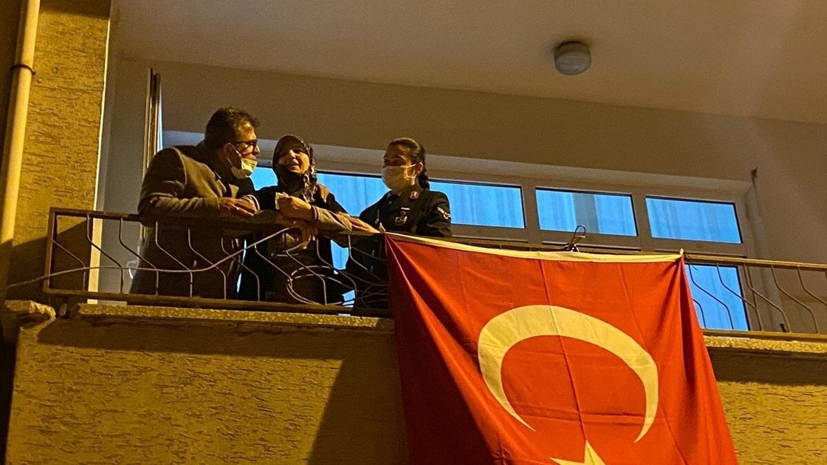 Taşköprü ilçesinde yaşayan anne Nezaket ile baba Mustafa Nar'ın evine Türk bayrakları asıldı.
