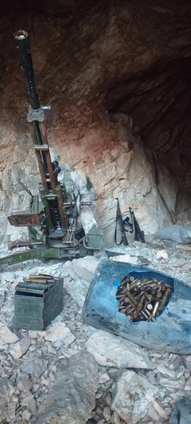 Hakkari Valiliği'nden yapılan açıklamada, "İl Jandarma Komutanlığı ekipleri tarafından gerçekleştirilen operasyonda PKK/KCK terör örgütüne ait 1 adet Doçka uçaksavar, 550 adet Doçka uçaksavar mühimmatı, 1 adet savunma tipi el bombası, 112 adet battaniye, 5 adet akü, 7 adet piknik tüpü, 4 adet mutfak tüpü, 50 çift ayakkabı, 7 jelikan mazot, 8 adet hilti ucu, 1 adet fırın, 1 adet mutfak ocağı, 6 adet güç kaynağı, 2 adet tol EYP anahtar sistemi, çok sayıda mutfak malzemesi, örgütsel doküman, elektrik malzemesi ve kadın hijyen malzemesi ele geçirildi" denildi.