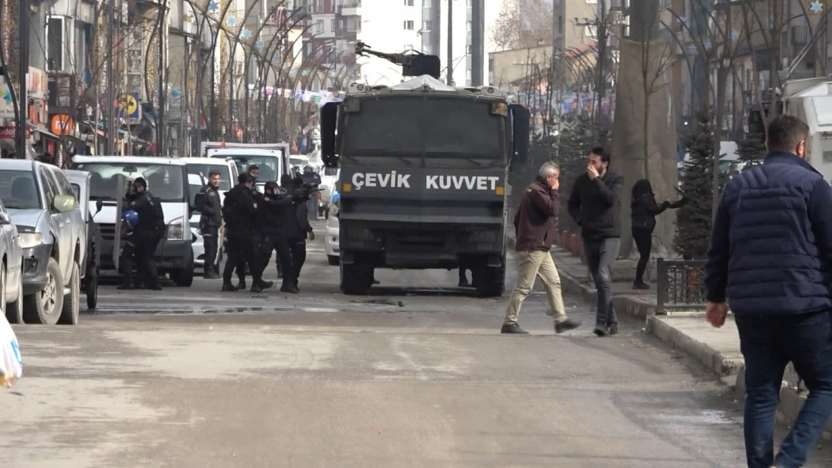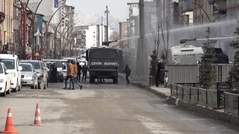 Polis de uyarıda bulundu. Polis araçlarına taş atıp, sloganlarını sürdüren gruba, biber gazı ve tazyikli suyla müdahale edildi.