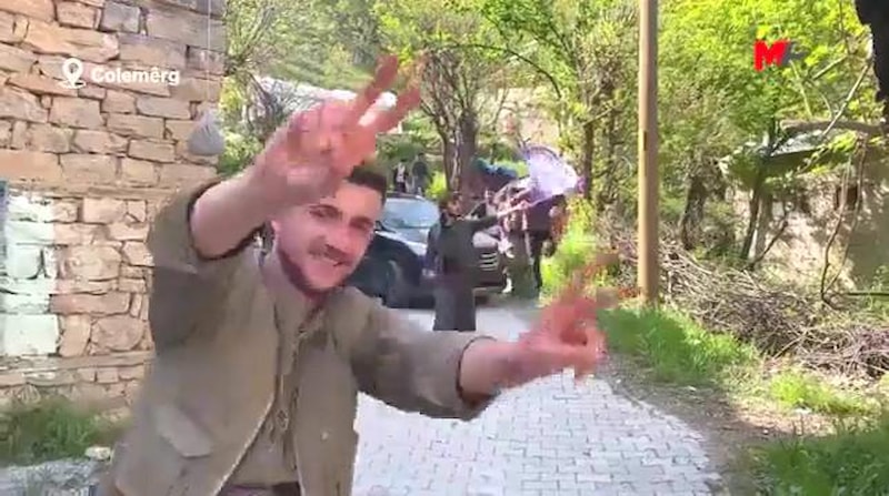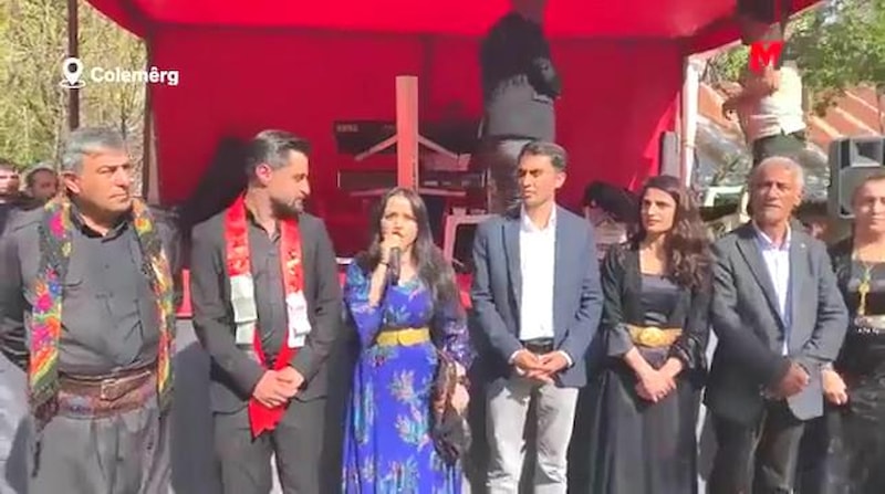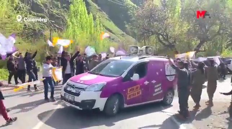 Hakkari'de seçim çalışması yürüten HDP'li milletvekili adayları, gittikleri bir köyde yerel kıyafetler giyen şahıslar tarafından karşılandı. O anlar böyle görüntülendi.